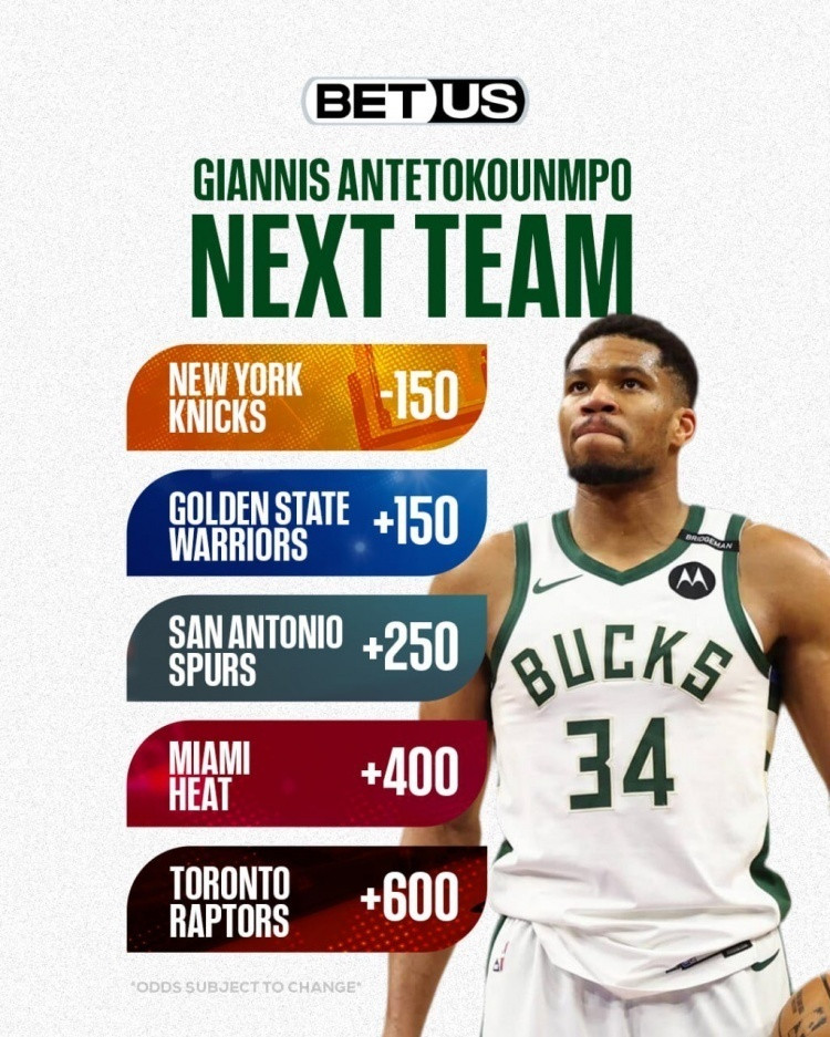 Vào ngày 9 tháng 10, vẫn còn 13 ngày nữa là mùa giải NBA mới bắt đầu. Trong thời gian gần đây, tương lai của ngôi sao Antetokounmpo của Bucks đã trở thành tâm điểm của người hâm mộ và giới truyền thông. Truyền thông Mỹ BetUS NBA đưa ra tỷ lệ kèo sân nhà tiếp theo của Antetokounmpo, với Knicks đứng đầu, tiếp theo là Warriors và Spurs.